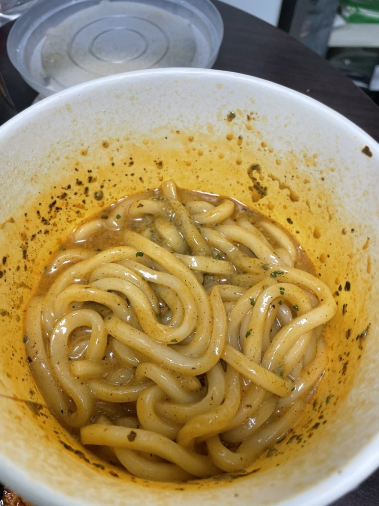 ✔️용기에 면과 불닭소스와 뜨거운 물 먼저 붓고