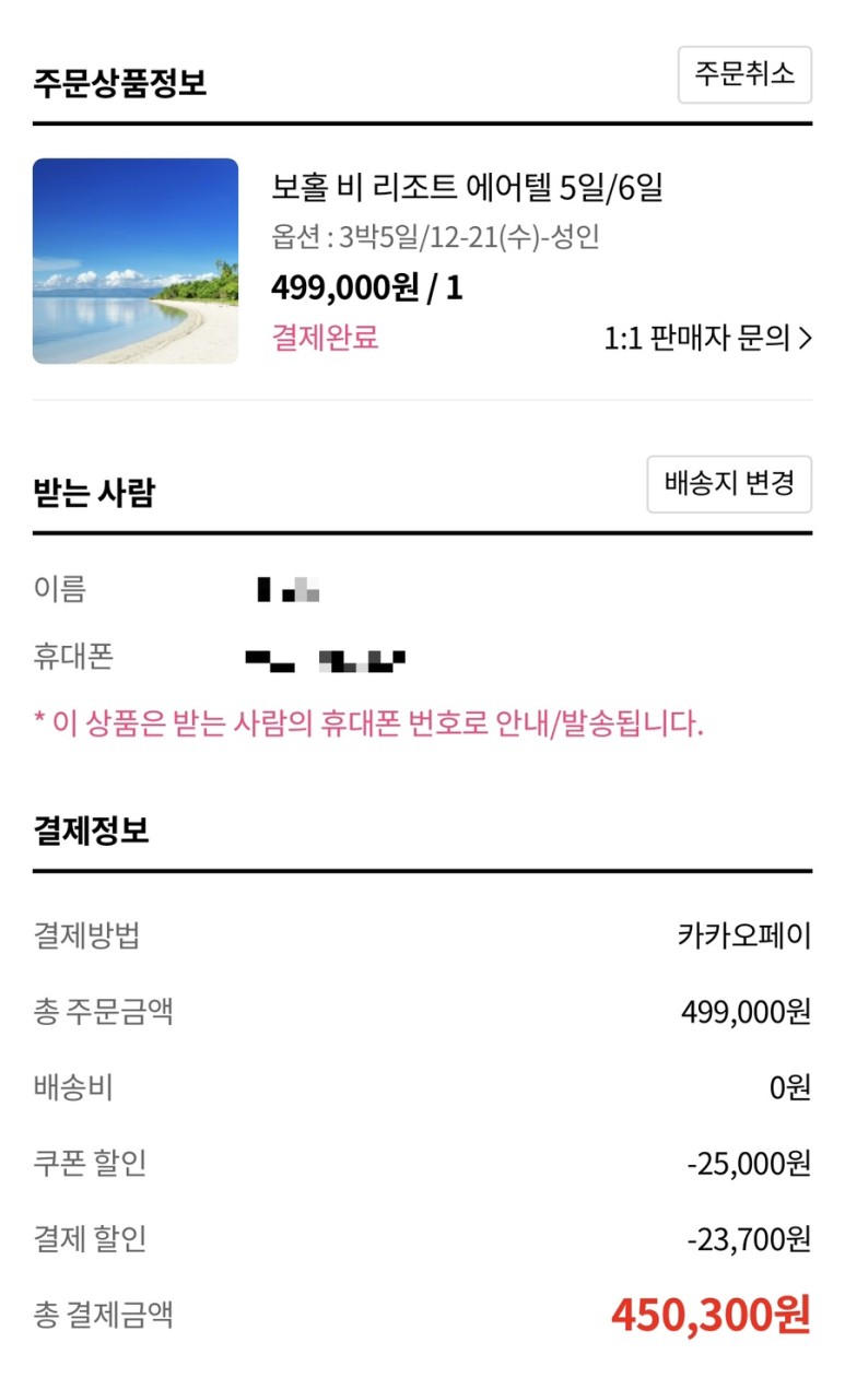 45만원에 결제했어요🙈