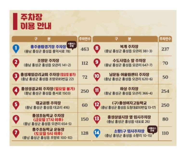 1번 홍주종합경기장 주차장은
